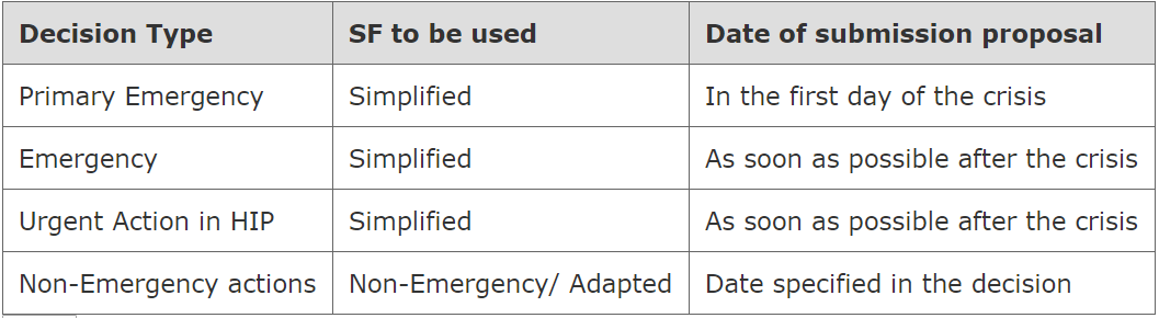In the Annex II of the Single Form Guidelines, you can find more details on mandatory sections of the Single Form for NGOs depending on the nature of the Action (Urgent, Non Emergency or Complementary) and the sections to be filled in by UN Agencies.